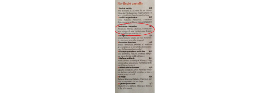 La sección Cultura del periódico La Vanguardia incluye en el ranking de los más vendidos del pasado domingo 14 de junio la obra SANADORES, UN CAMINO ALTERNATIVO, escrita por Alejandra Mitnik, en tercera posición.